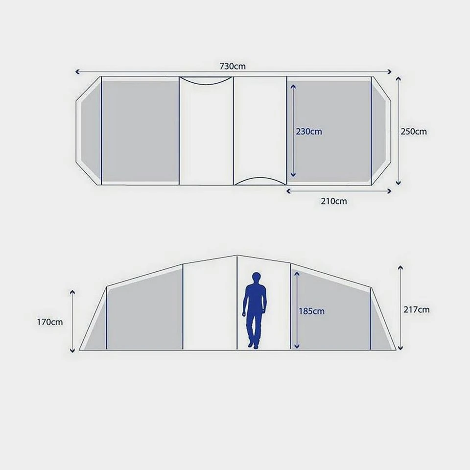 Mesh doors throughout keep insects away and adjustable curtains allow you to balance light levels night and day in the spacious lounge area. The bedrooms are removable for extra space when required and are placed at opposite ends of the tent for extra privacy. The air beams take minutes to inflate, and are even easier to deflate, meaning you can spend more time enjoying your weekend in the great outdoors. Once assembled, the beams are super-strong and able to withstand wind and rain to keep you comfortable and safe inside.Â