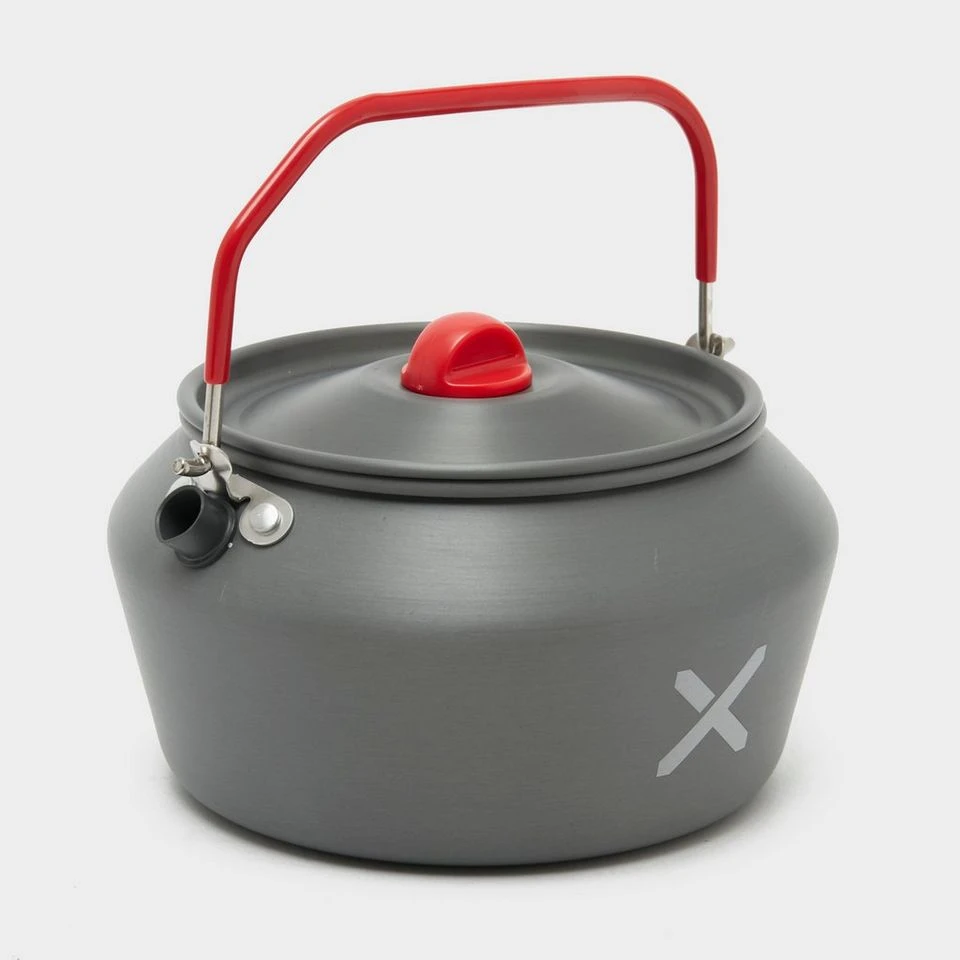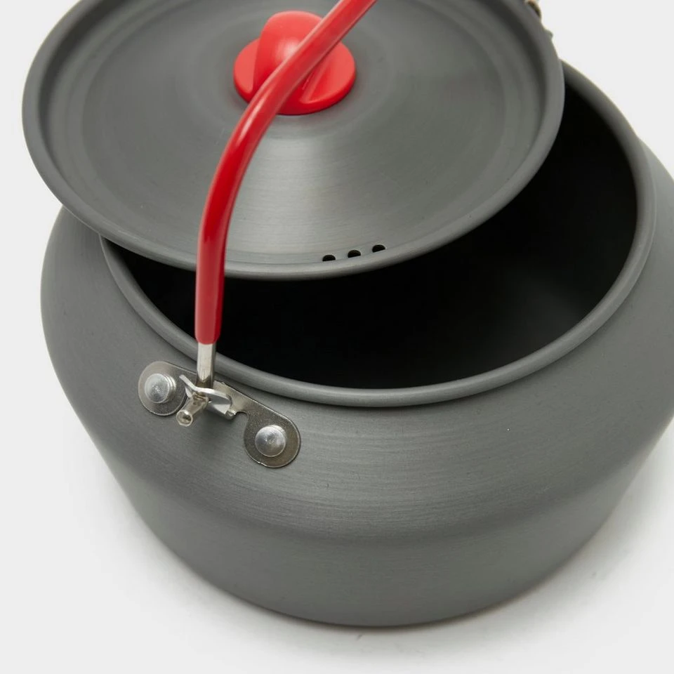 A hard anodised 1.4L aluminium kettle, large enough for a brew or few.