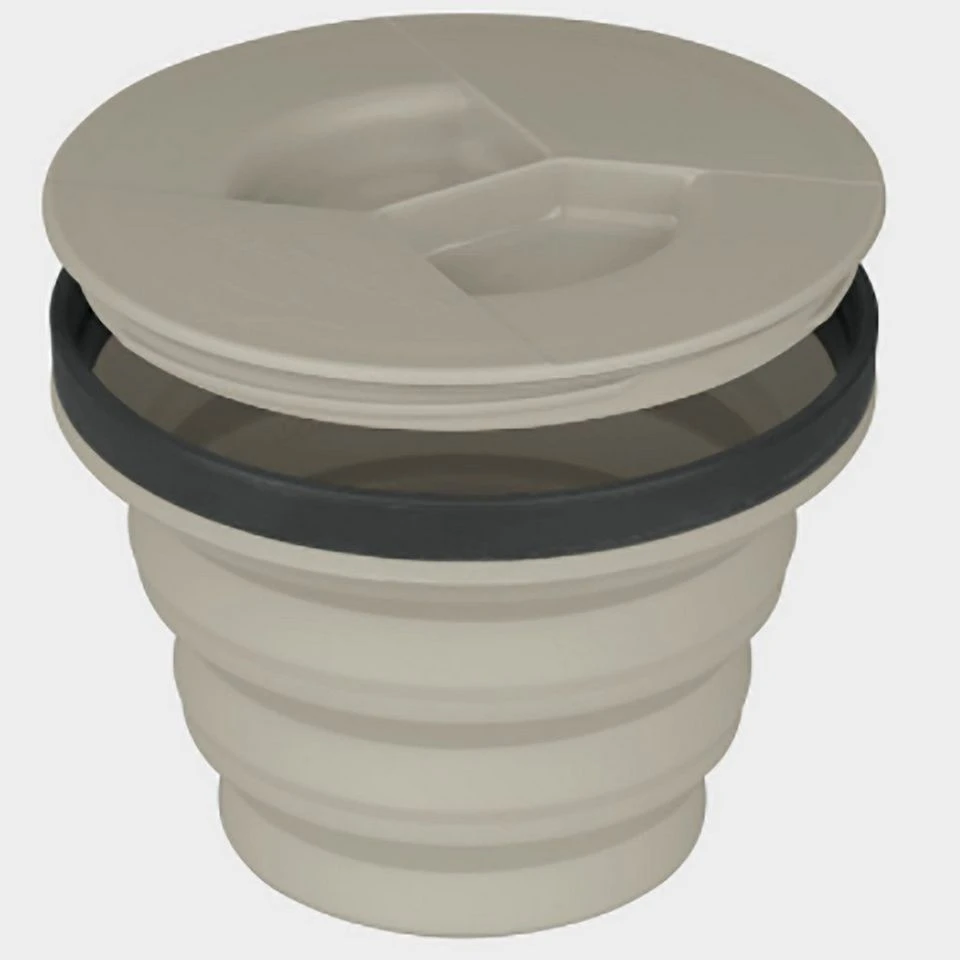 An airtight sealable camping bowl that collapses down for compact storage on-the-go.